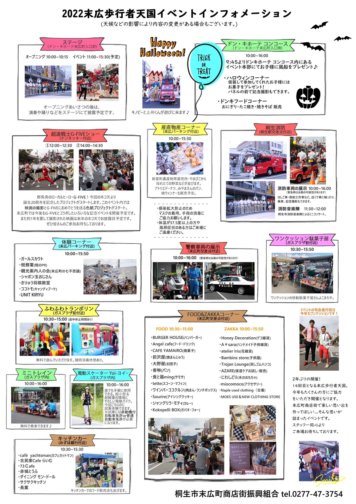 2025年10月19日 日曜日 午前10時から午後4時まで、 桐生ガスプラザの駐車場を会場に、 FM桐生が主催する「ラジオのマルシェ 」を開催します! FM桐生のパーソナリティたちが、 それぞれの“好き“や特技を活かしたブースを出展し、 子どもから大人まで楽しめる体験を提供します。 いつものラジオパーソナリティがスタジオを飛び出して、みなさんとふれあう1日。 ラジオが“届ける“だけでなく、“まざる“存在になる特別なイベントです! 当日は、第17回 G-FIVEロード防犯防災イベント「末広歩行者天国(末広ホコ天)」 ~すえひろDEハロウィン~が開催されます! 入場は無料。体験ブースは一部有料です。 会場内には休憩スペースもありますので、是非、ご家族そろってお越しください。 みなさんのご来場、お待ちしています! | |