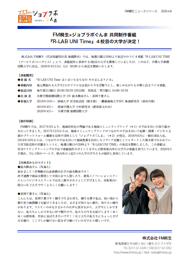 なお、FM桐生公式アプリFM++(プラプラ)では、通常通りの配信を行います。