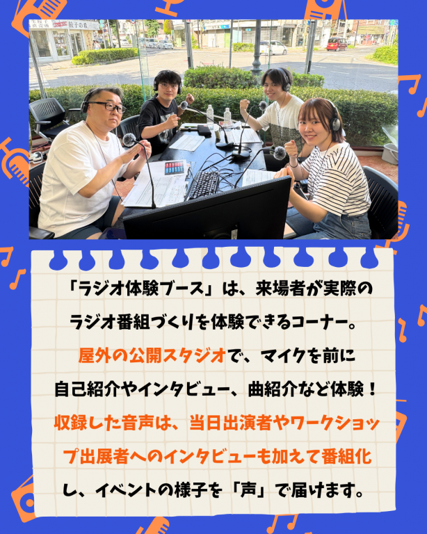 いつものラジオパーソナリティがスタジオを飛び出して、みなさんとふれあう1日。 ラジオが“届ける“だけでなく、“まざる“存在になる特別なイベントです!